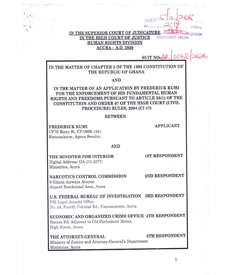 Popular Ghanaian social media personality Frederick Kumi, widely known as Abu Trica, has filed a lawsuit against the Economic and Organised Crime Office (EOCO), the Ministry of the Interior, the Narcotics Control Commission (NACOC), the Attorney-General and the United States Federal Bureau of Investigation (FBI), alleging unlawful arrest, detention and violations of his fundamental human rights.