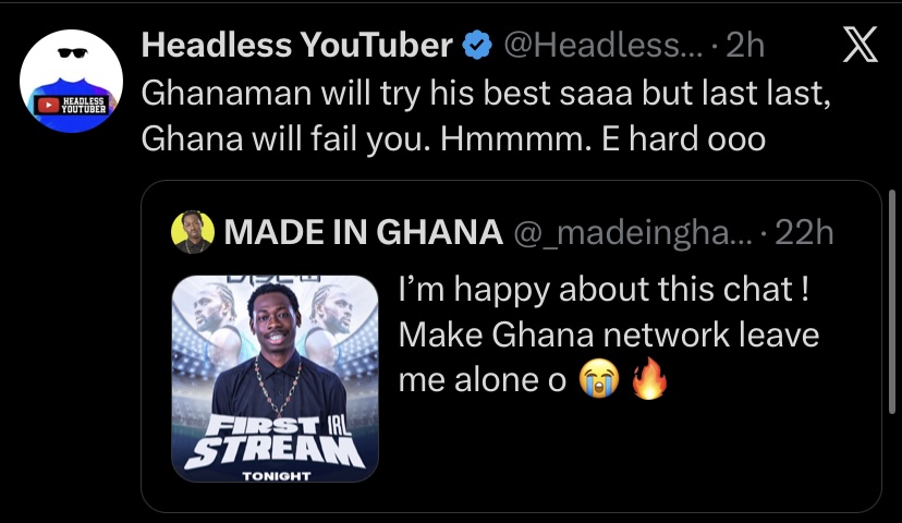 The incident quickly sparked conversation on social media, with fans expressing both frustration and sympathy. Many sympathizers praised the streamer’s effort while lamenting the systemic challenges that continue to hinder young digital creatives in Ghana.