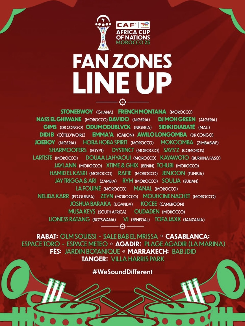 The Fan Zones, which are set to run alongside the tournament, will feature live performances, cultural showcases and match screenings in cities such as Rabat, Casablanca, Agadir, Marrakech, Fès and Tangier, turning the football fiesta into a full-blown celebration of African music and culture.