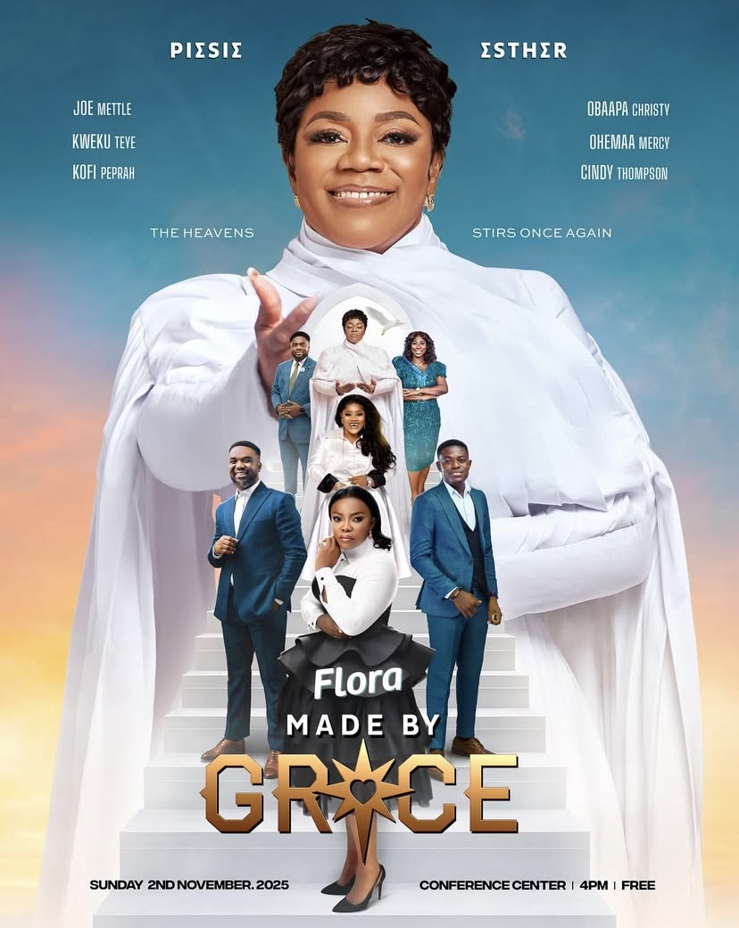 Award-winning gospel singer Piesie Esther has announced the return of her annual MADE BY GRACE concert, themed The Overflowing Grace. The much-anticipated worship event comes off on Sunday, 2 November 2025 at the Accra International Conference Center and this time, entry is absolutely free.
